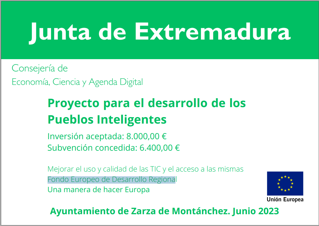 El ayuntamiento de Zarza de Montánchez ha sido beneficiario de una subevción para mejorar el uso y la calidad de las TIC y el acceso a las mismas.
